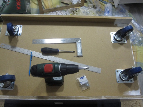 The remaining rack profiles have been further delayed and are expected in week 36. So I’m continuing with the wheels and I’ll start working on the design of the console top. The wheels should make the whole desk movable in order to keep the room usage flexible. The front wheels have brakes on them in order to lock the console when at its working position. Here are the pictures…